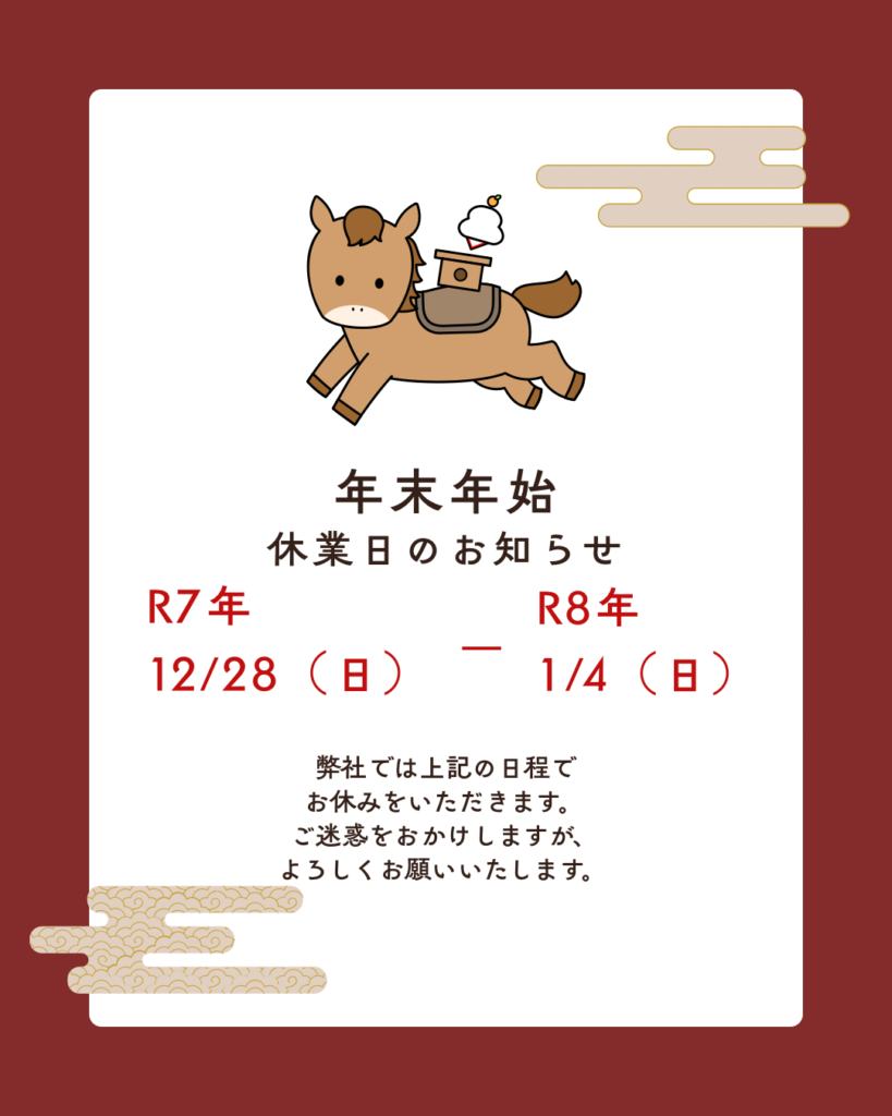 年末年始休業日のお知らせ✨
